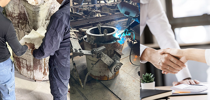加藤耐火工業とは 鋳造業界を支える柱として、取鍋施工・築炉施工・各種修理・耐火物販売を通じ、現場に“信頼と品質”を届けています。 常に学び・研究・挑戦を重ねながら、より良いサービスと技術を追求しています。 加藤耐火工業の強み ① 迅速な対応と柔軟な施工力 ② 確かな技術と品質管理 ③ 納品後の徹底サポート体制 会社概要を見る 事業内容 納品して終わりではなく、使うほどに信頼が深まる関係を。 現場と共に、より良い技術とサービスを追求しています。 施工実績 詳しく見る 加藤耐火工業とは 鋳造業界を支える柱として、取鍋施工・築炉施工・各種修理・耐火物販売を通じ、現場に“信頼と品質”を届けています。 常に学び・研究・挑戦を重ねながら、より良いサービスと技術を追求しています。 加藤耐火工業の強み ① 迅速な対応と柔軟な施工力 ② 確かな技術と品質管理 ③ 納品後の徹底サポート体制 会社概要を見る 事業内容 納品して終わりではなく、使うほどに信頼が深まる関係を。 現場と共に、より良い技術とサービスを追求しています。 施工実績 詳しく見る